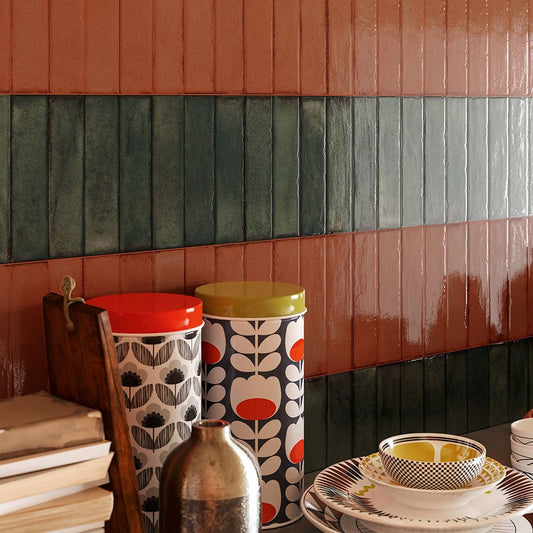 Ceramic Tile Zellige Botanical Green Glossy 2.5"x8"