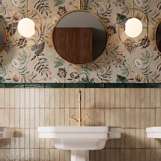 Porcelain Subway Tile Botanical Creme Glossy 2"x8"