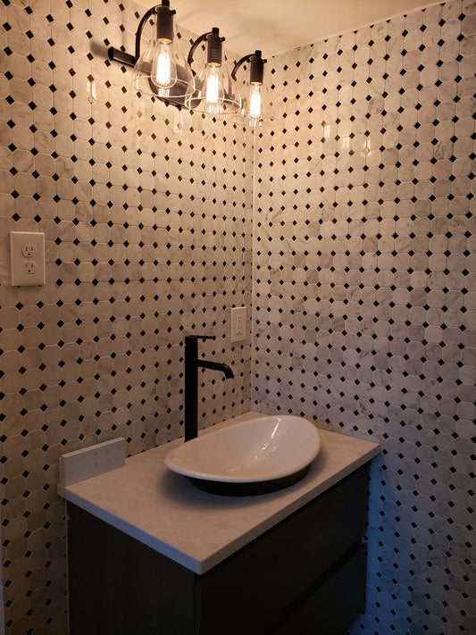 Octagon Carrara White & Nero Marquina Marble Mosaic Polished
