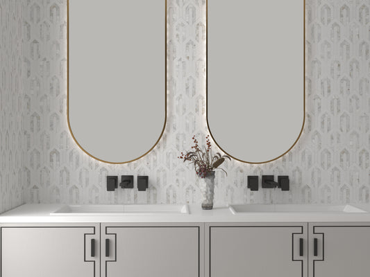 Mini Bolt Marble Waterjet Mosaic Thassos and Mother of Pearl