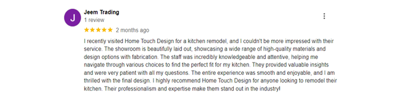 Home Touch Design Center is your premier destination for kitchen and bathroom remodeling, offering a wide selection of top-quality kitchen cabinets, countertops (quartz, granite, marble), tiles, backsplashes, and bathroom vanities. We also specialize in flooring, natural stone supplies, and custom cabinetry. Our expert team uses advanced 3D design technology to bring your home renovation dreams to life. Serving New Jersey and New York, we welcome interior designers, contractors, and homeowners to explore our extensive range of products and services for every remodeling need. Visit our showroom for personalized service and explore our wide range of products.