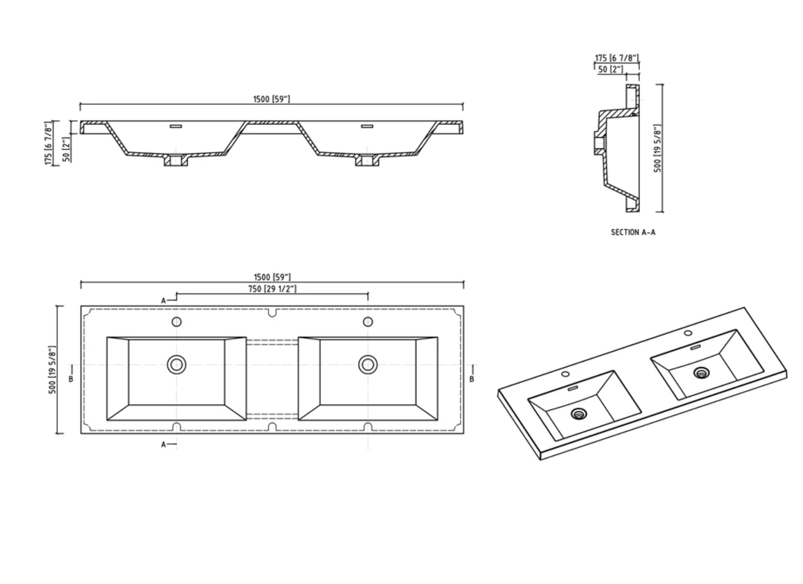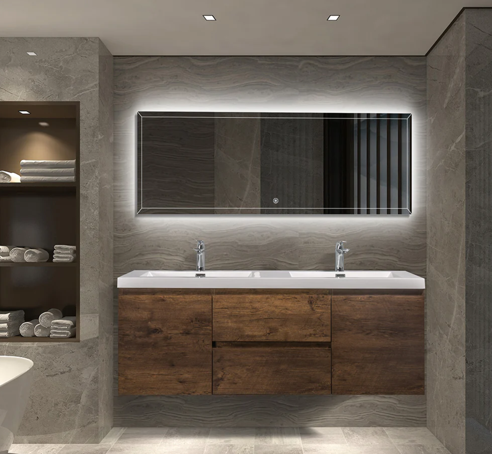 60" V9005 Angela Wall Hung Vanity & Acrylic Double Basins