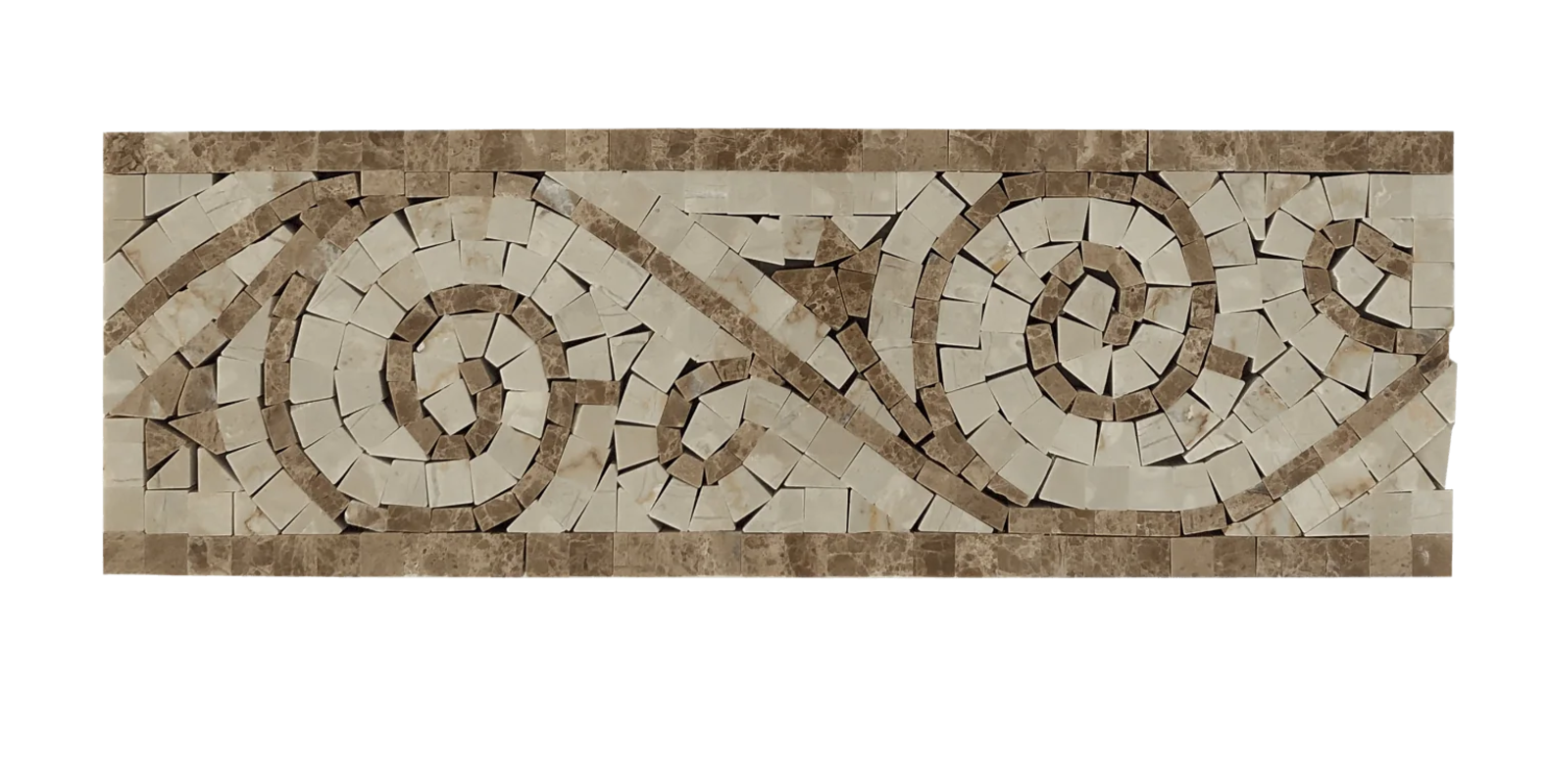 Add a warm, sophisticated accent to your design with the Light Emperador & Bottocino Marble Art Border. Measuring 4"x12", this border blends the creamy tones of Bottocino marble with the Light Emperador marble, creating a subtle yet elegant contrast.