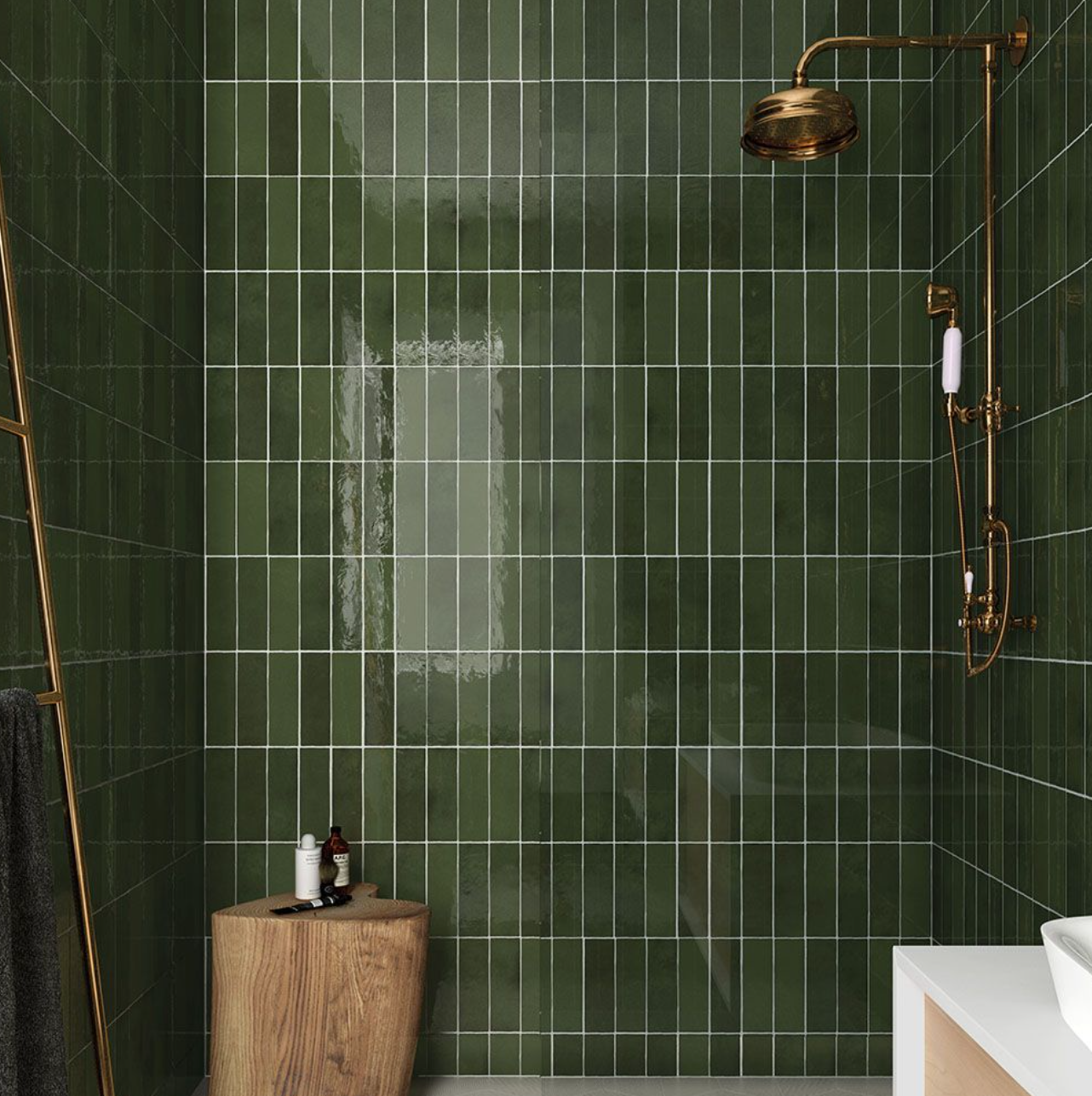 Ceramic Tile Zellige Botanical Green Glossy 2.5"x8"