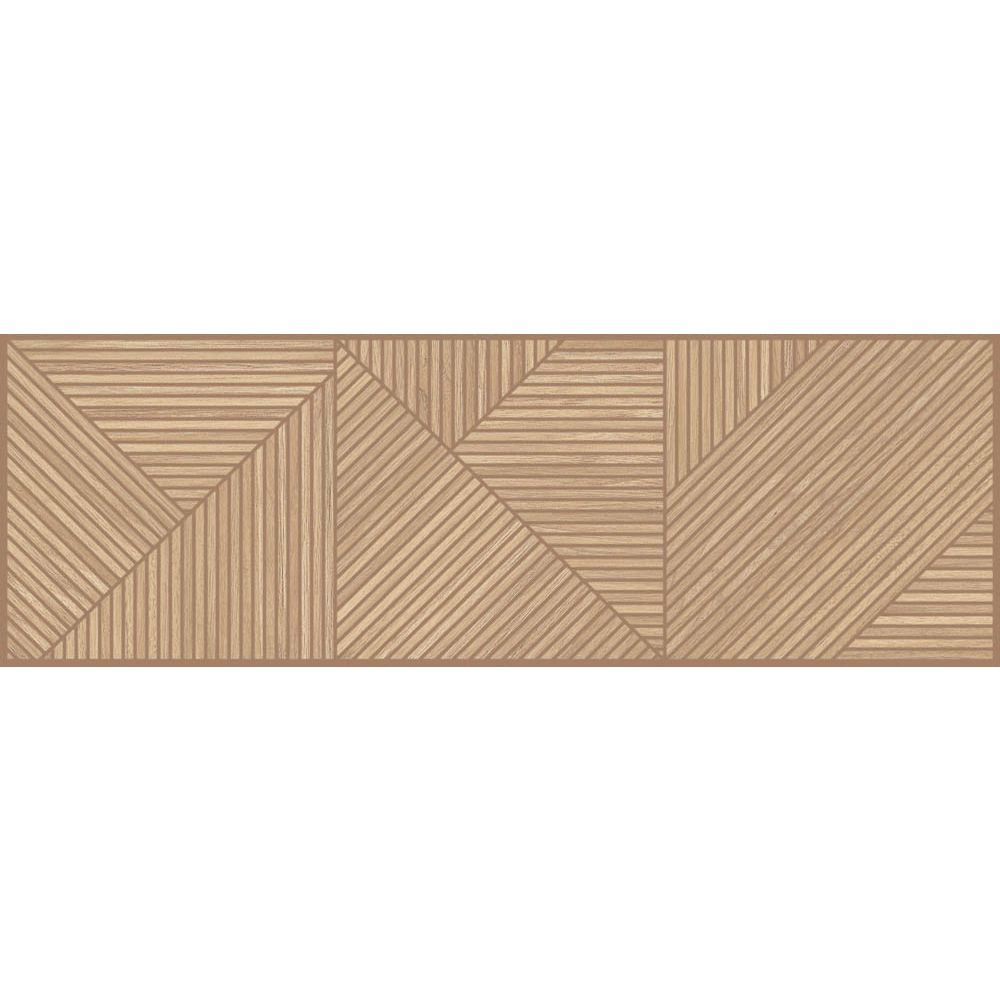 The Angles Roble pattern features rich wood tones with intricate, angled lines that form a sophisticated, three-dimensional effect. Whether used as an accent wall, backsplash, or full-wall covering, this tile adds depth and artistry to any space.