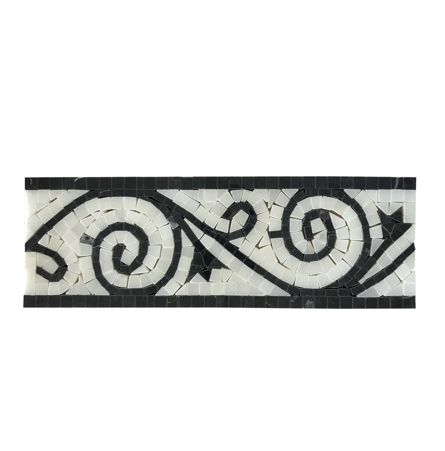 Add a warm, sophisticated accent to your design with the Nero Marquina & Pure White Marble Art Border. Measuring 4"x12", this border blends the luxury tones of Nero Marquina marble with the pristine brightness of pure white marble, creating a subtle yet elegant contrast.
